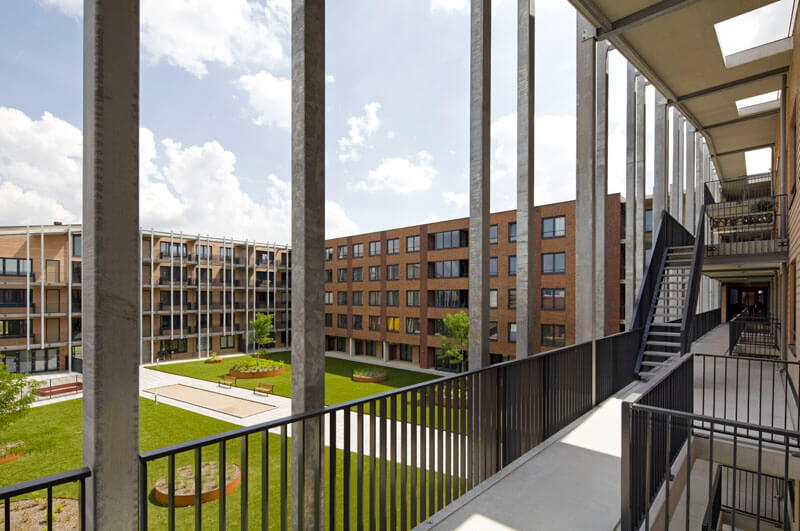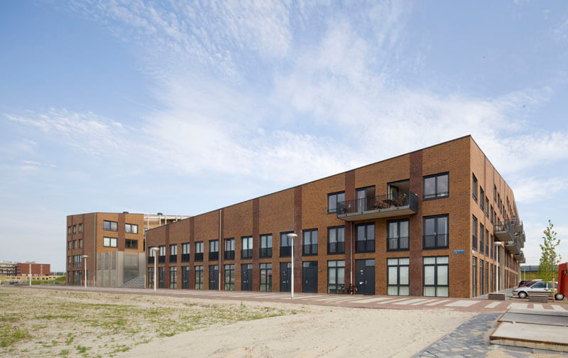 Tussen beide straten is een hoogteverschil van 1.20 m, hetgeen tot een split-levelopbouw aanleiding gaf.