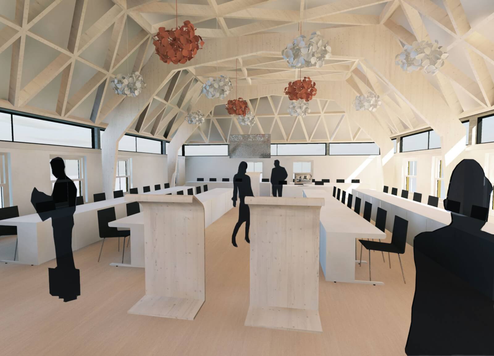 In haar rol als medewerker van gemeente Stichtse Vecht heeft Jana dit ontwerp gemaakt. Vervolgens heeft ze een andere variant uitgewerkt en de uitvoering begeleid, zie project Raadzaal gemeente Stichtse Vecht.